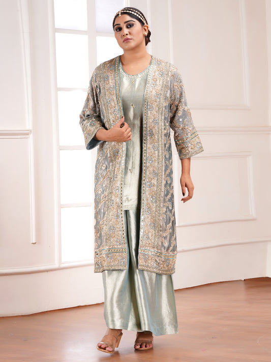 Sold outGreen Tissue Silk Jacket & Kurta Set