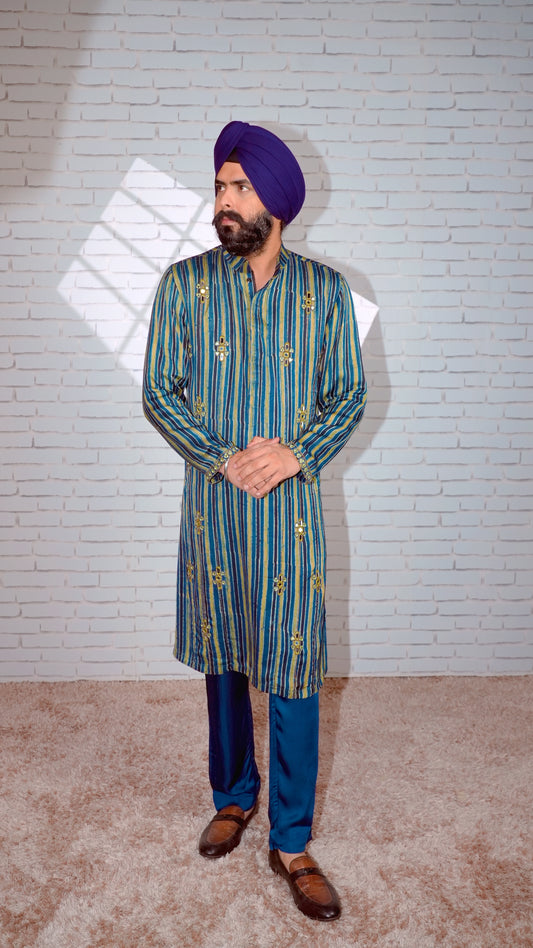 Blue Ajrakh Embroidered Silk Kurta Set