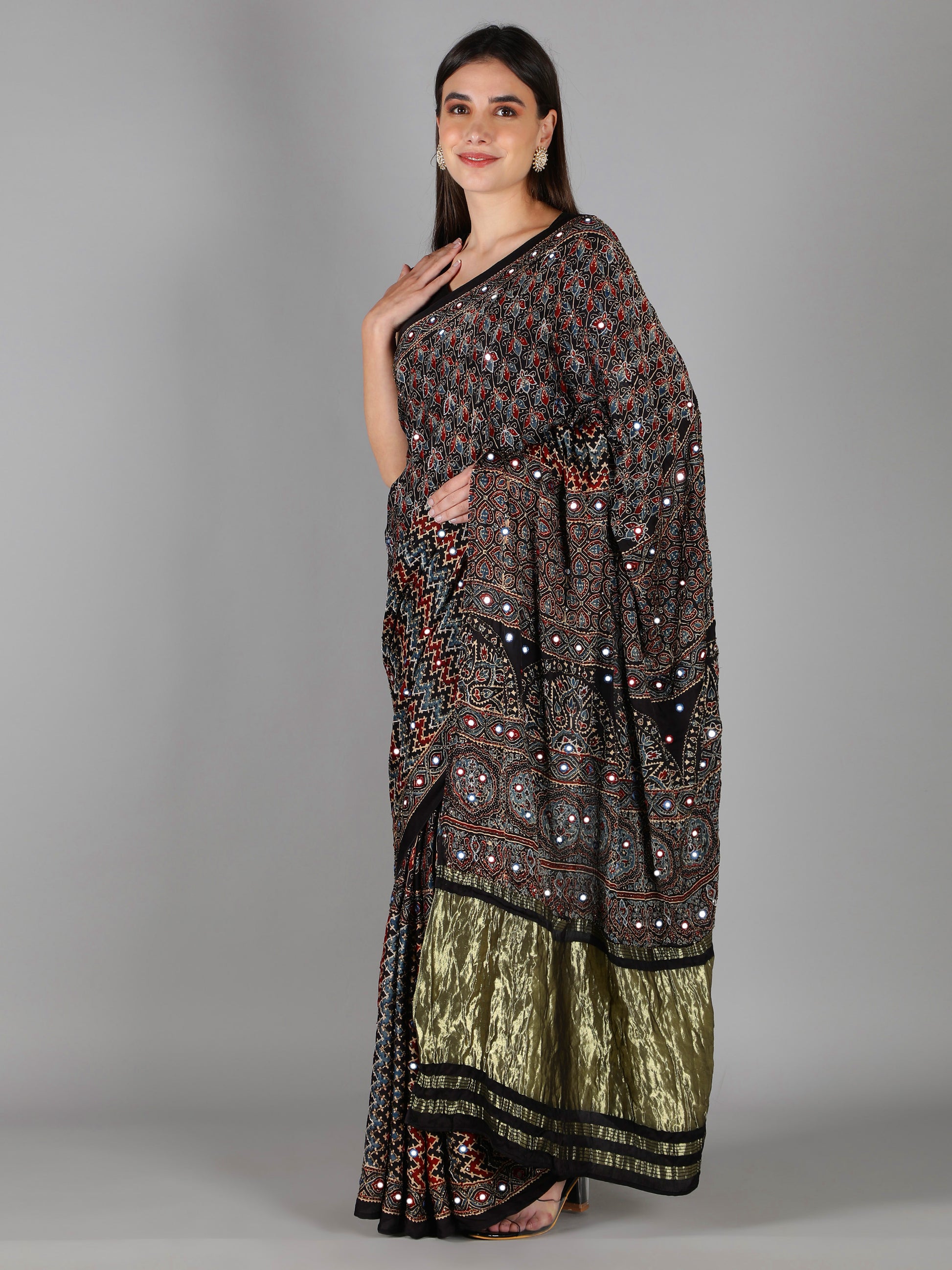 Drape yourself in this Sheeshakari saree and let the mirrors turn you in to a glimmering star.