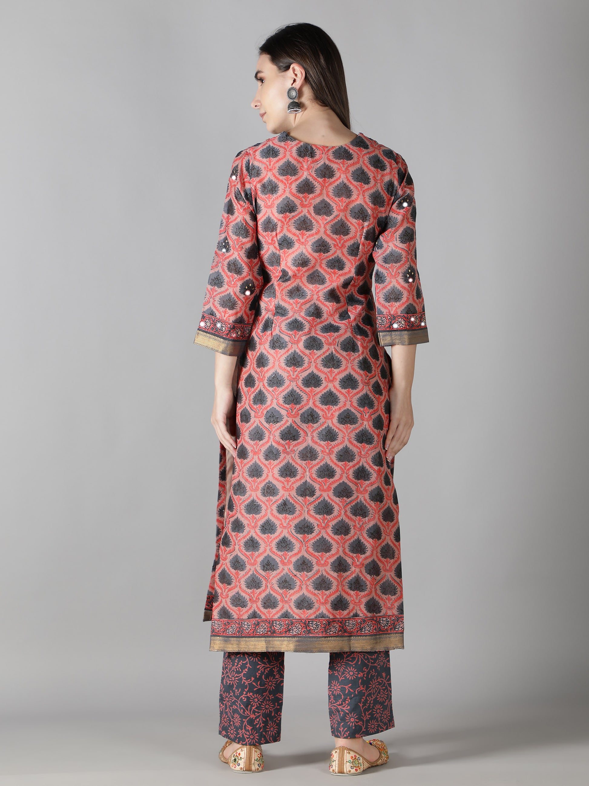 2. The hemline and the sleeves feature a zari border