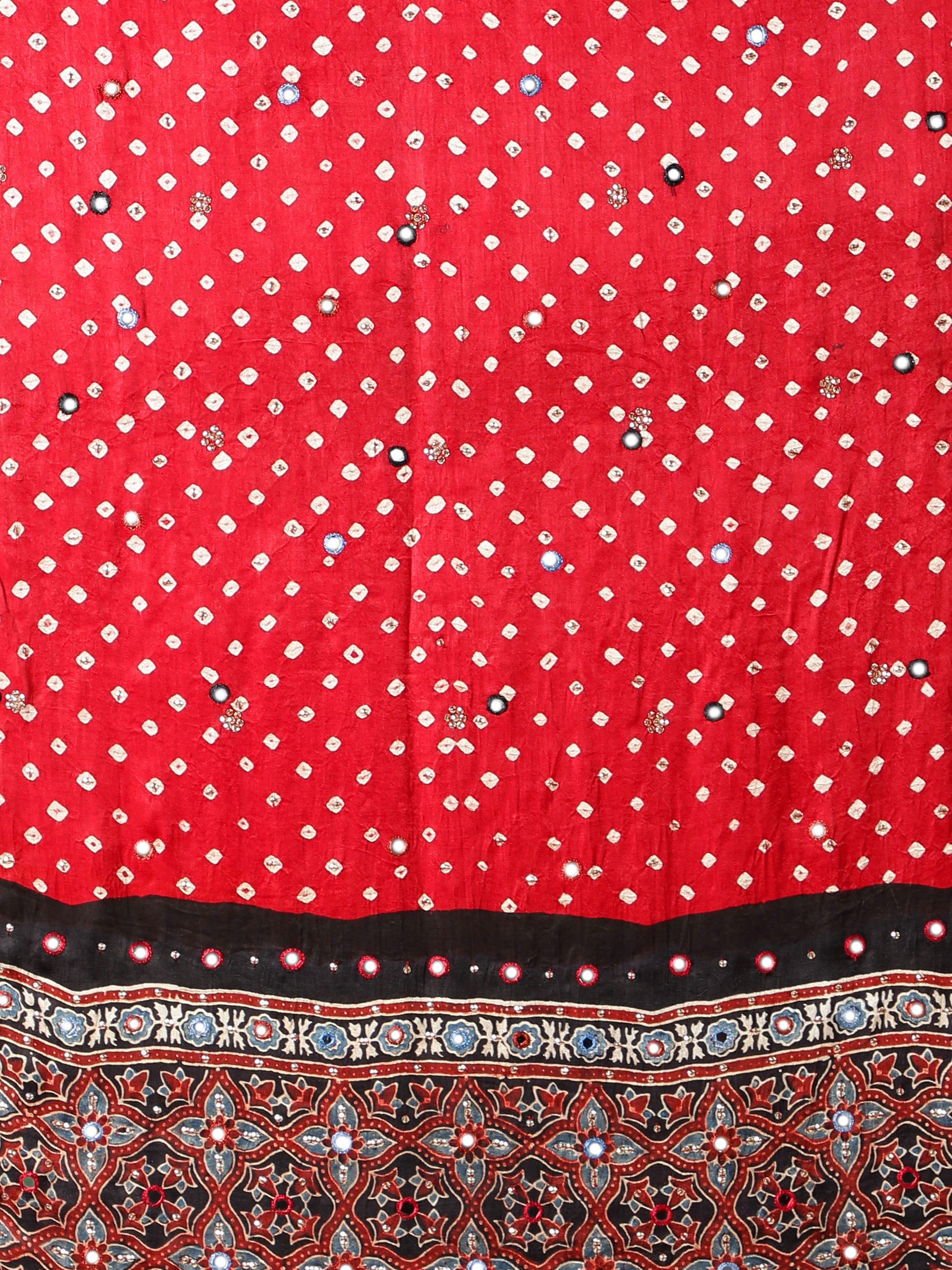 Deep Crimson Red Bandhej, Ajrakh Pallu Dupatta