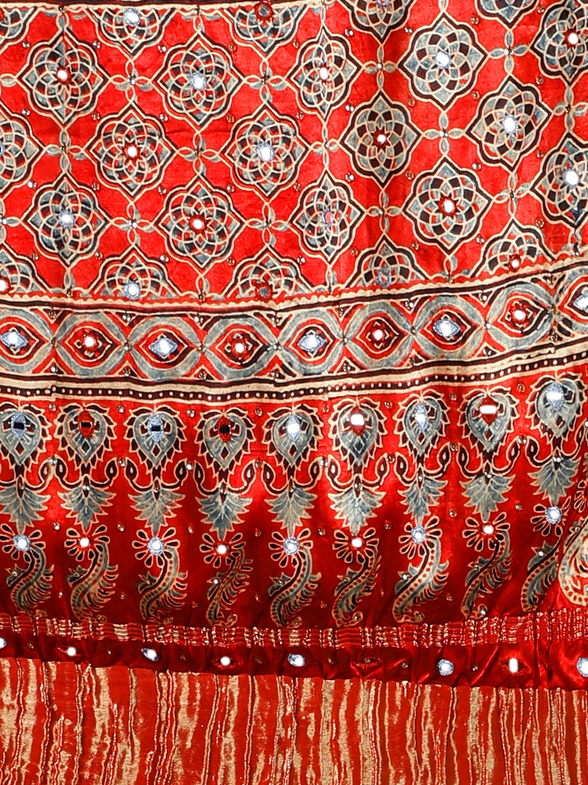Emerald Green Bandhej With Zari Pallu Ajrakh Dupatta