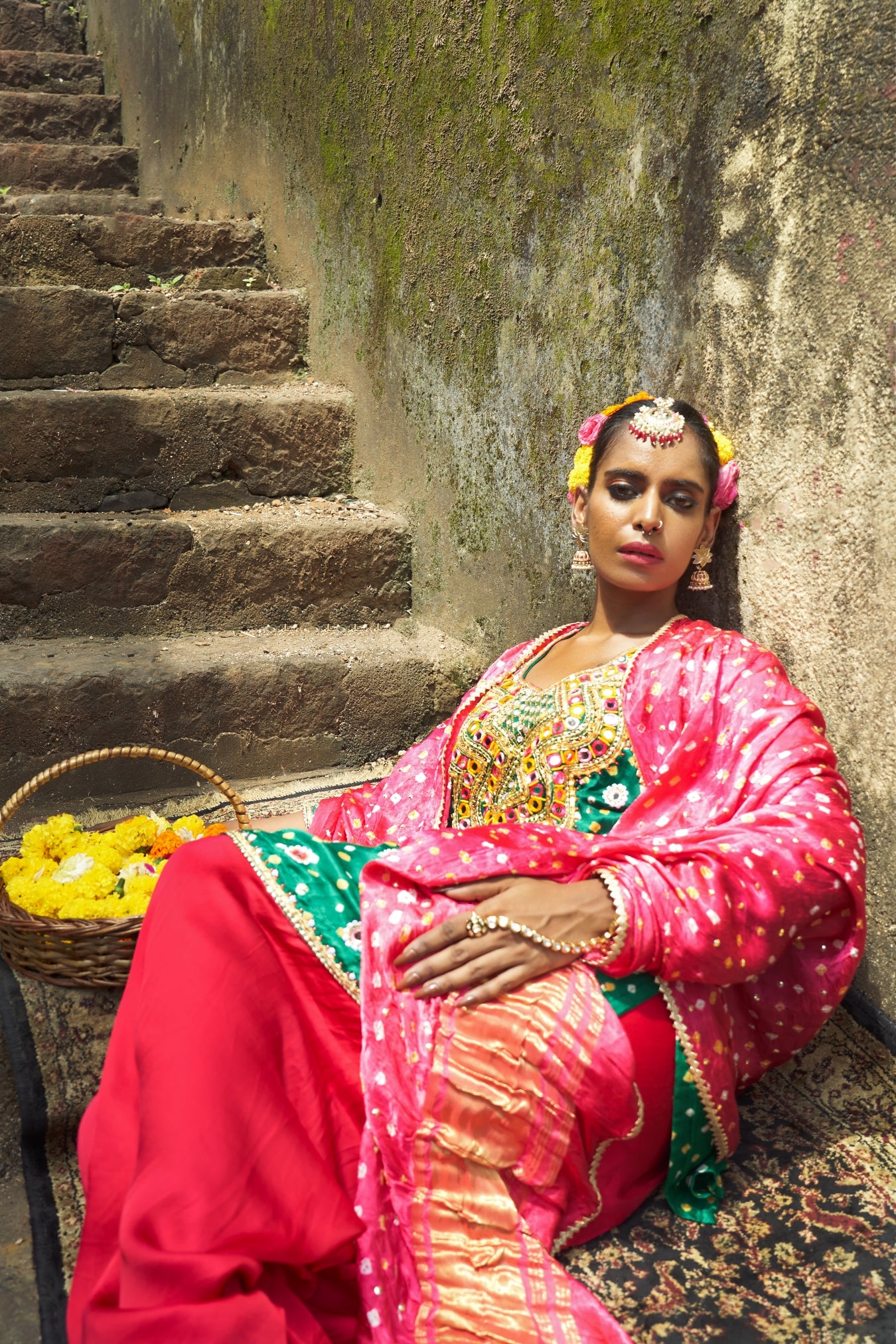 - The bandhani silk dupatta has zari pallu and is hand embroidered.