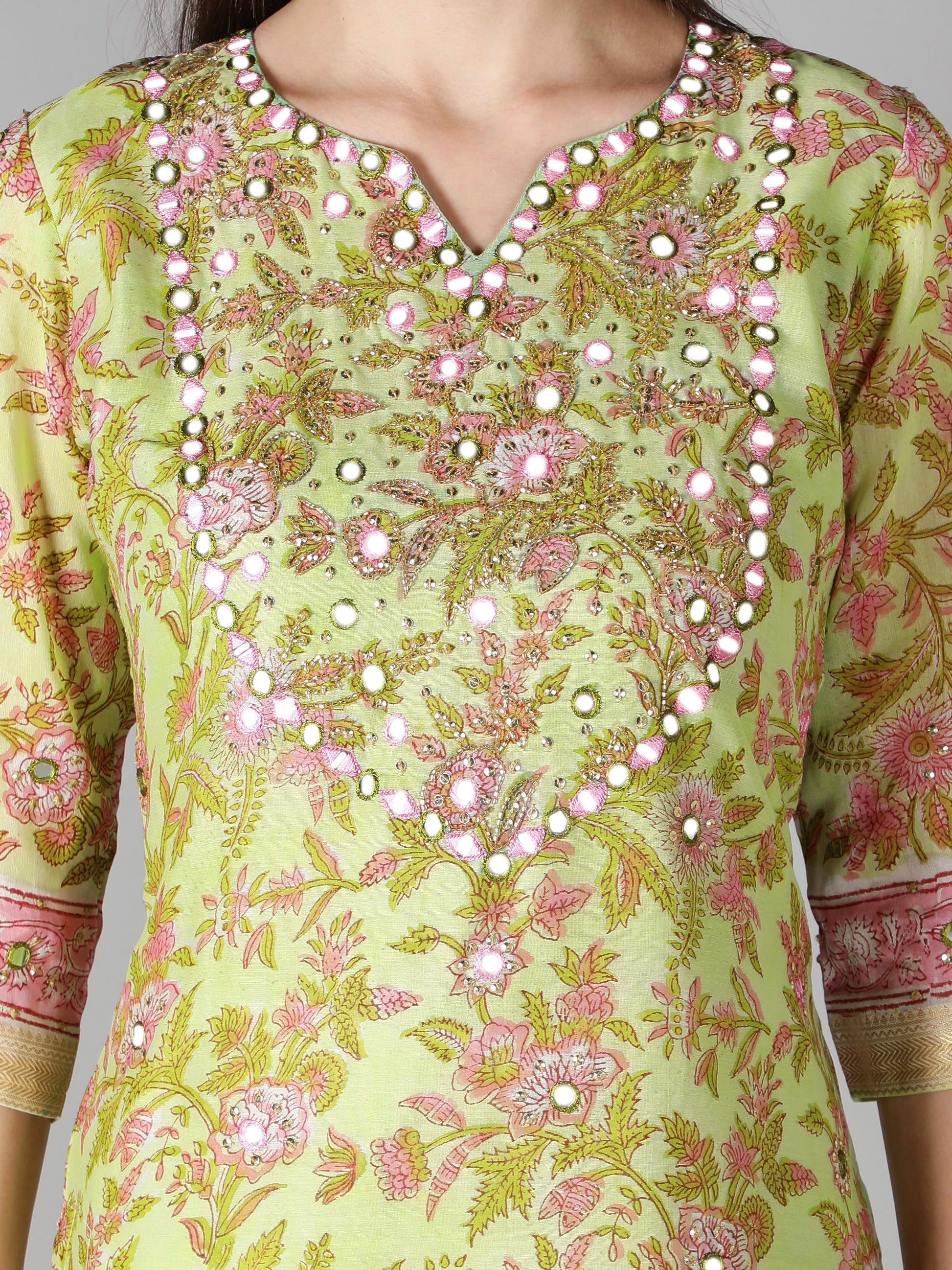 3. Our signature sheeshakari, resham and golden bead handwork add to the vibrancy of the kurta.