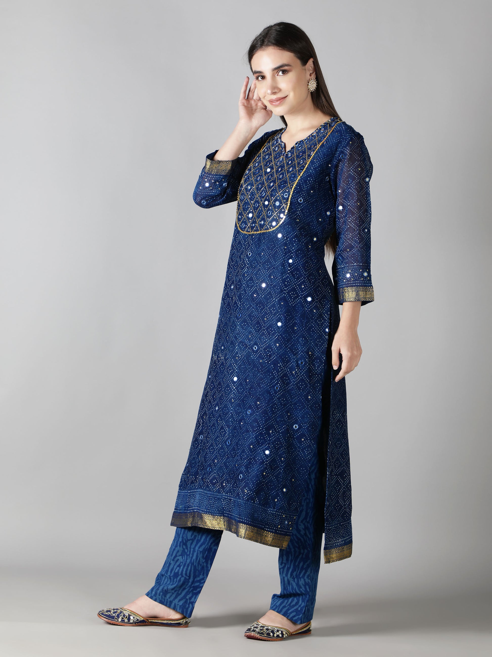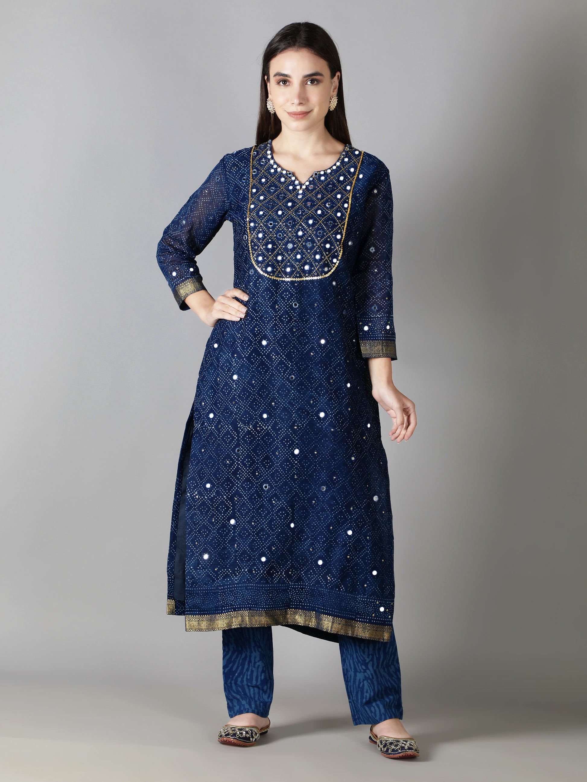 This 3 piece kurta set will remind you of the twinkling stars in the midnight sky.