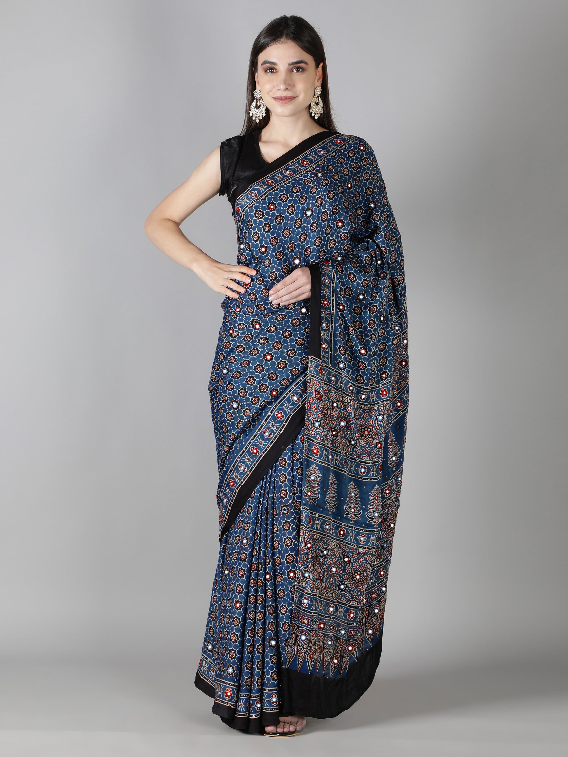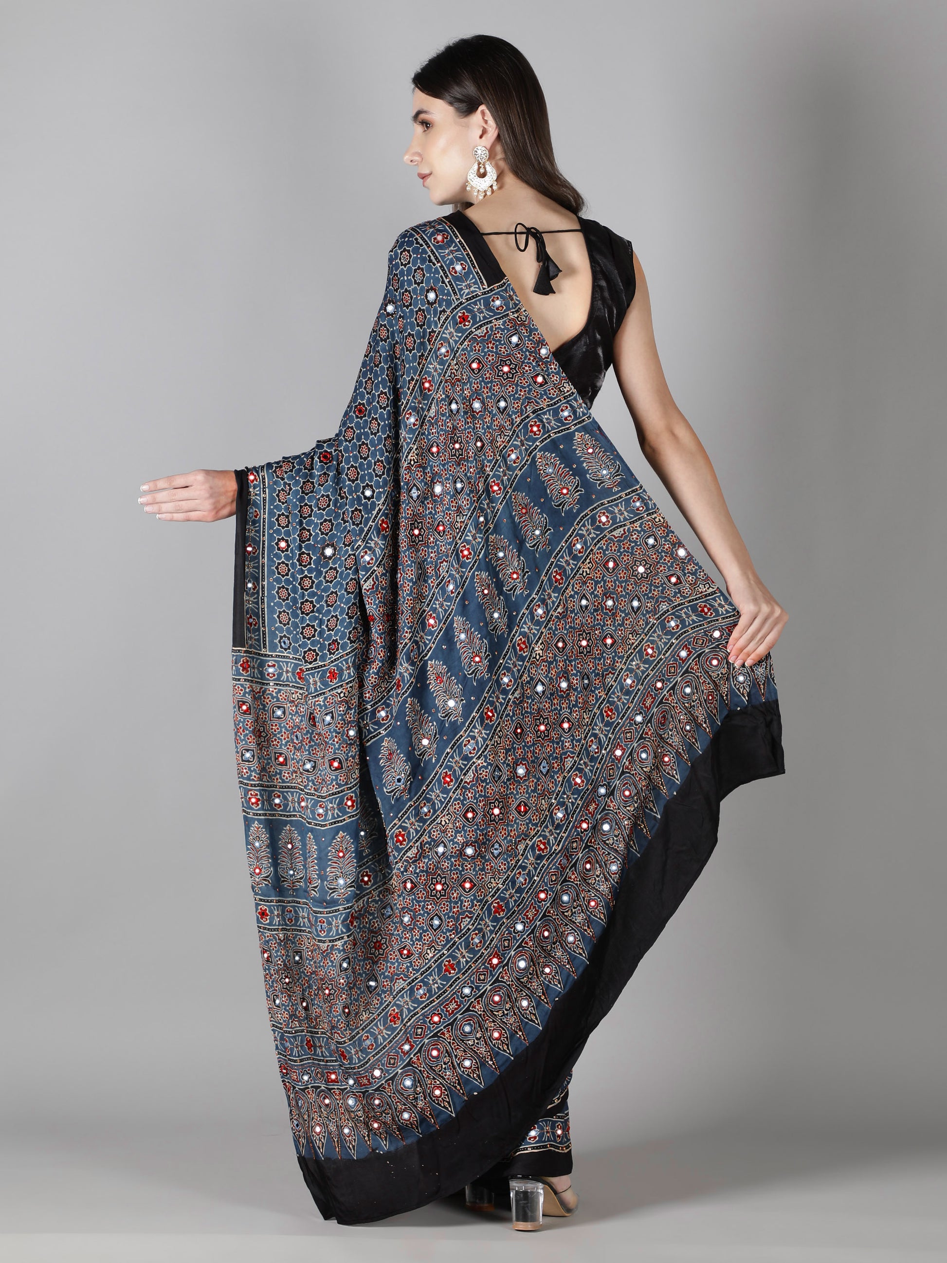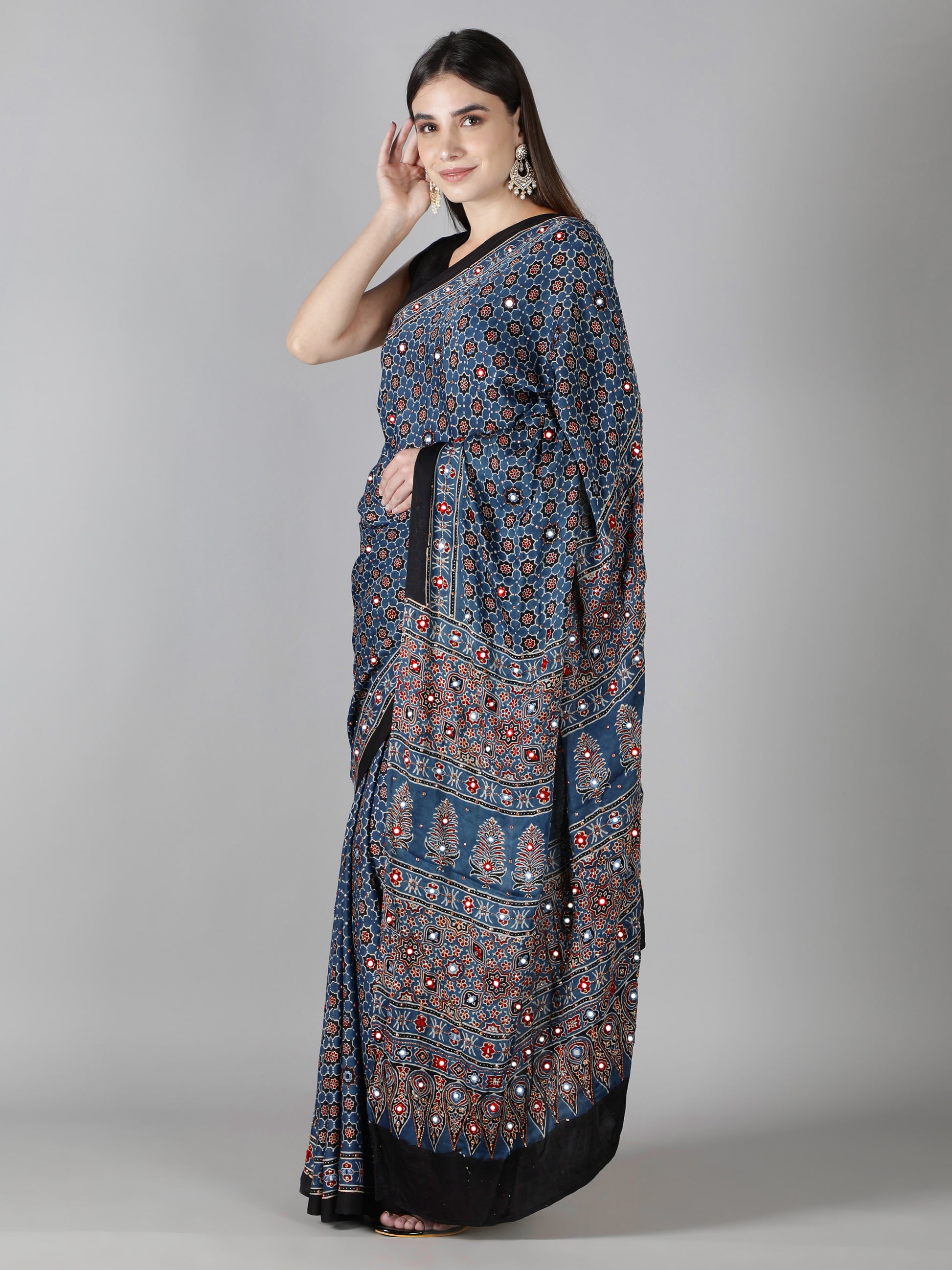 - The medley of motifs on the pallu are enchanced by our signature sheeshakari.