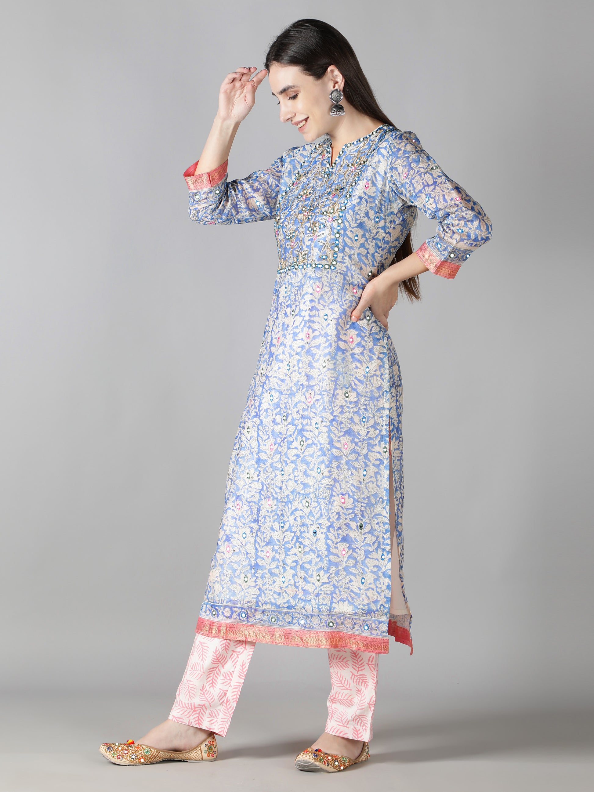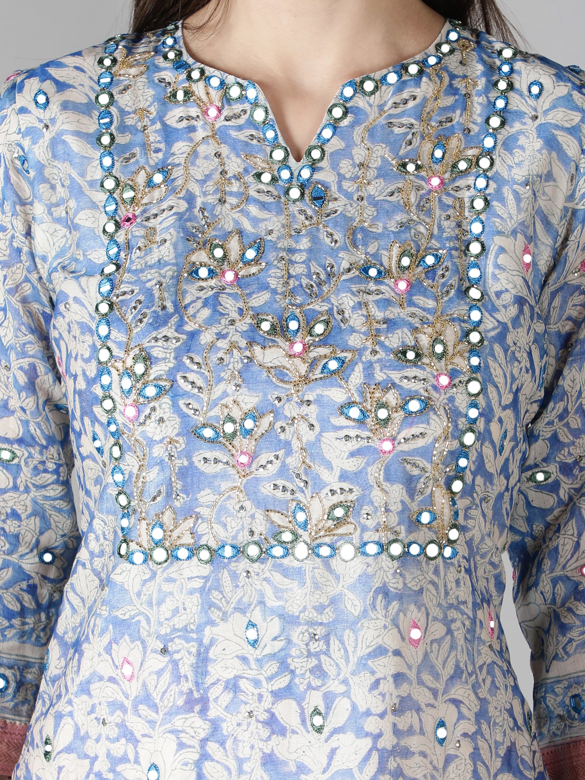 Serenity Blue Kurta With White And Pale Pink Pants And Dupatta