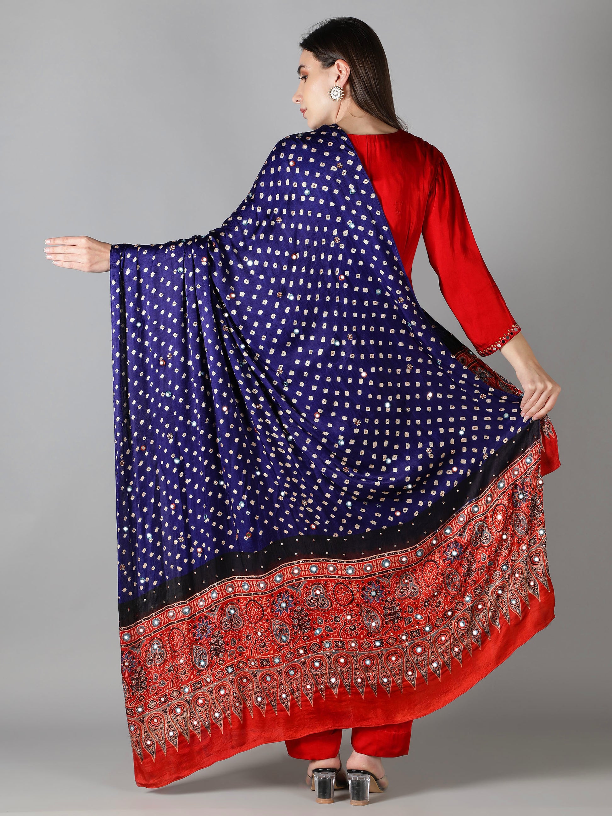 Violet Bandhej With Red Ajrakh Pallu Dupatta
